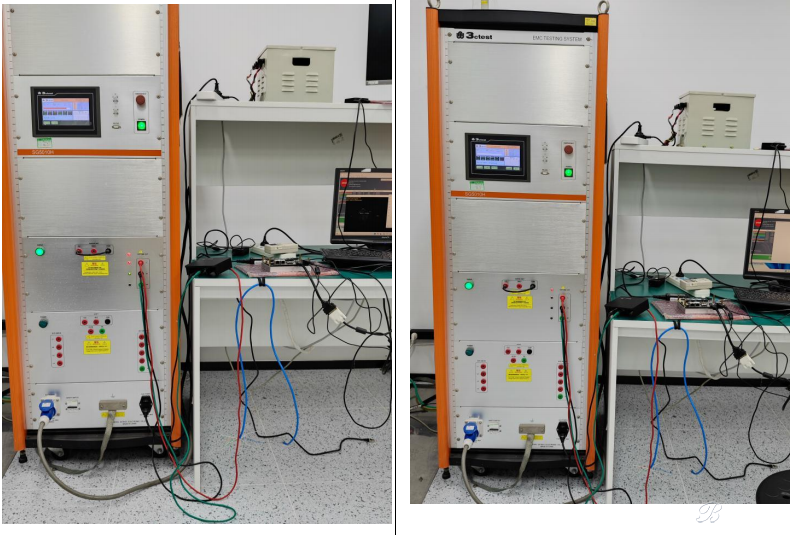 生产线上的电焊机、大功率电机一启动,电压瞬间波动可能会导致设备莫名重启,因此借助杰和科技专业设备全自动雷击浪涌发生器对AF208进行测试,主要测网口以及电源线在受到外部电压影响时,是否能正常工作。