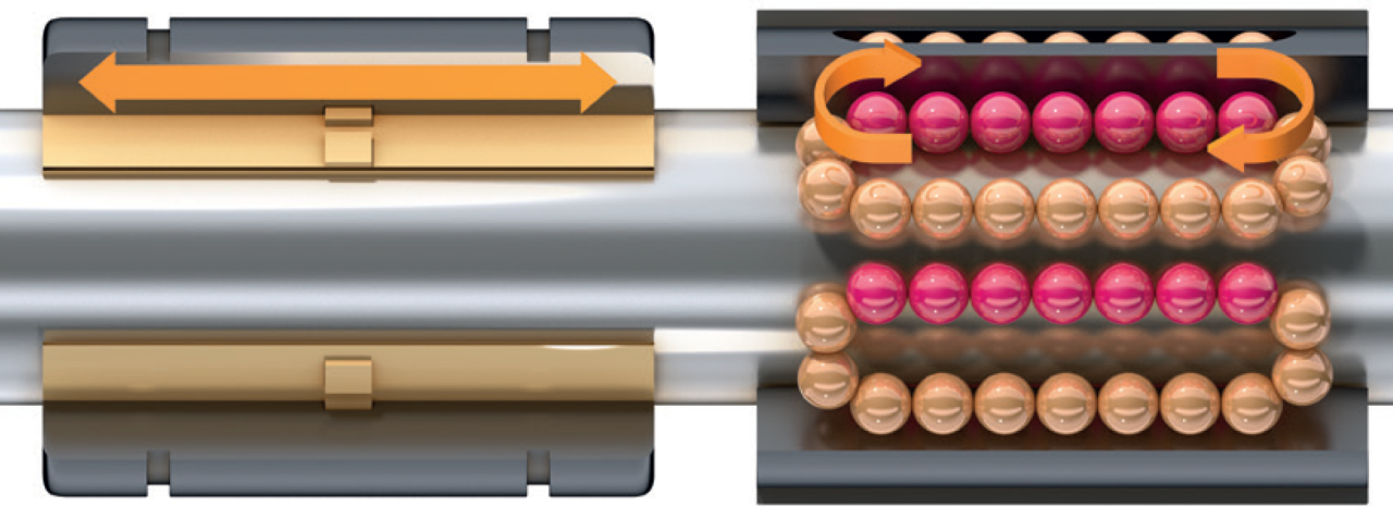 ▲ 工程塑料滑动轴承和循环滚珠轴承结构