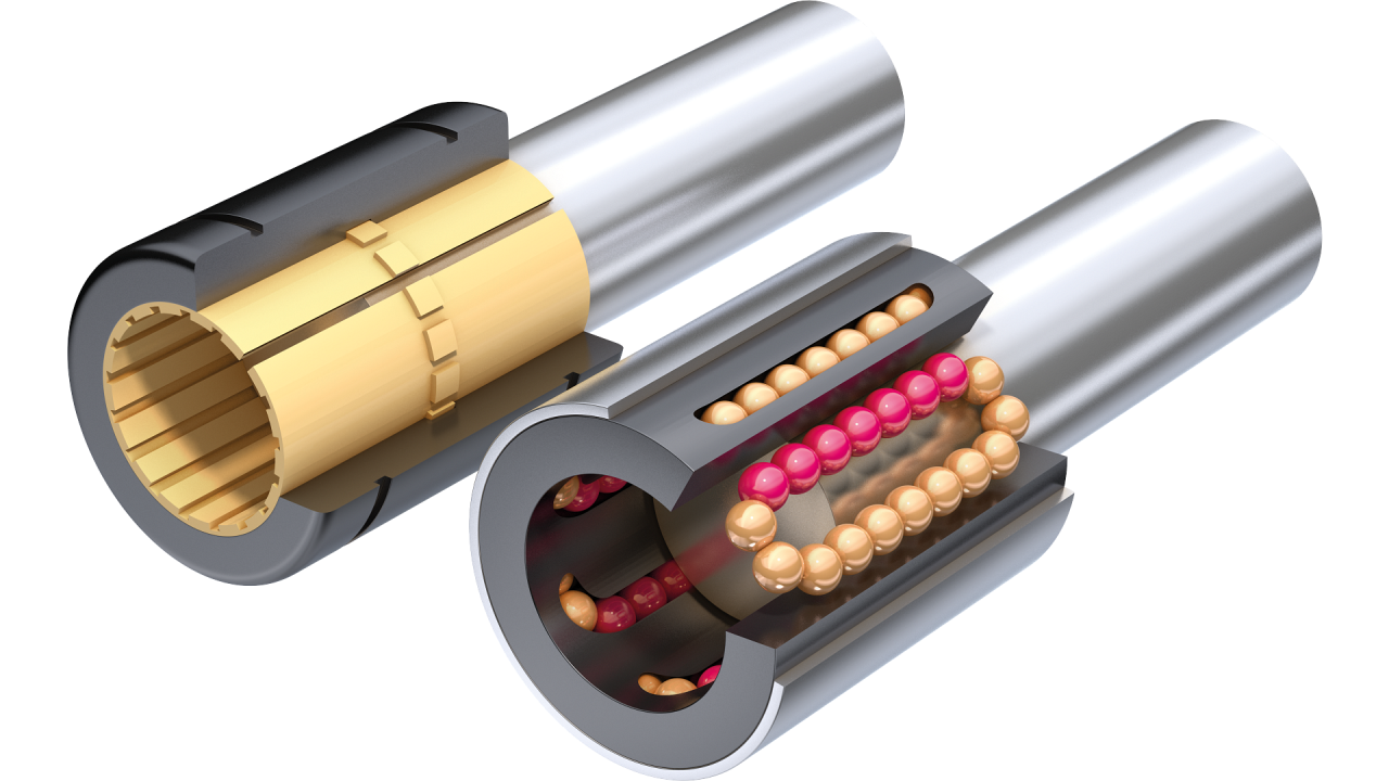 总的来说,滚珠轴承仍然是不错的选择,直到特殊材料的滑动轴承问世。新型的塑料滑动轴承充分利用了现代材料技术,将固体润滑脂、塑料基体和纤维材料均匀混合,可以在没有润滑的情况下可靠工作,轻松实现 10 m/s 高速、100G 加速度的运动,尤其在苛刻环境条件下(高热、极度干燥、高湿等),由高性能塑料制成的轴承通常比传统滚珠轴承更耐用,适合应用场景更加广泛。