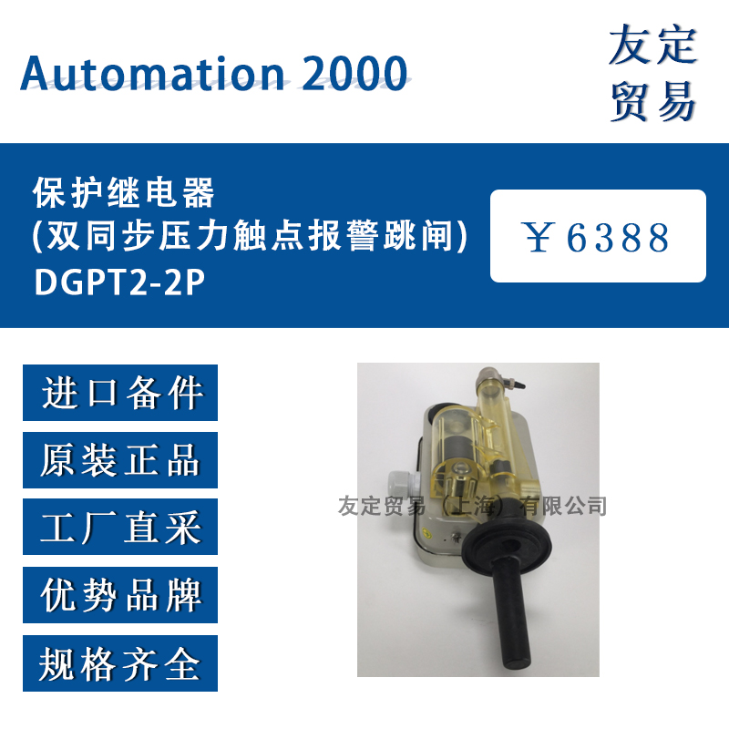法国Automation 2000 DGPT2-2P保护继电器(双同步压力触点报警跳闸)是一款针对油浸式变压器设计的综合保护装置,具有高精度、快速响应和多级保护等特点。以下是对该产品的详细介绍:
