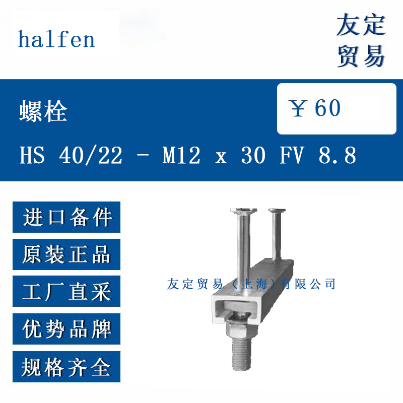 欧洲进口 halfen HS 40/22 - M12 x 30 FV 8.8 螺栓