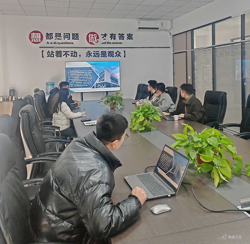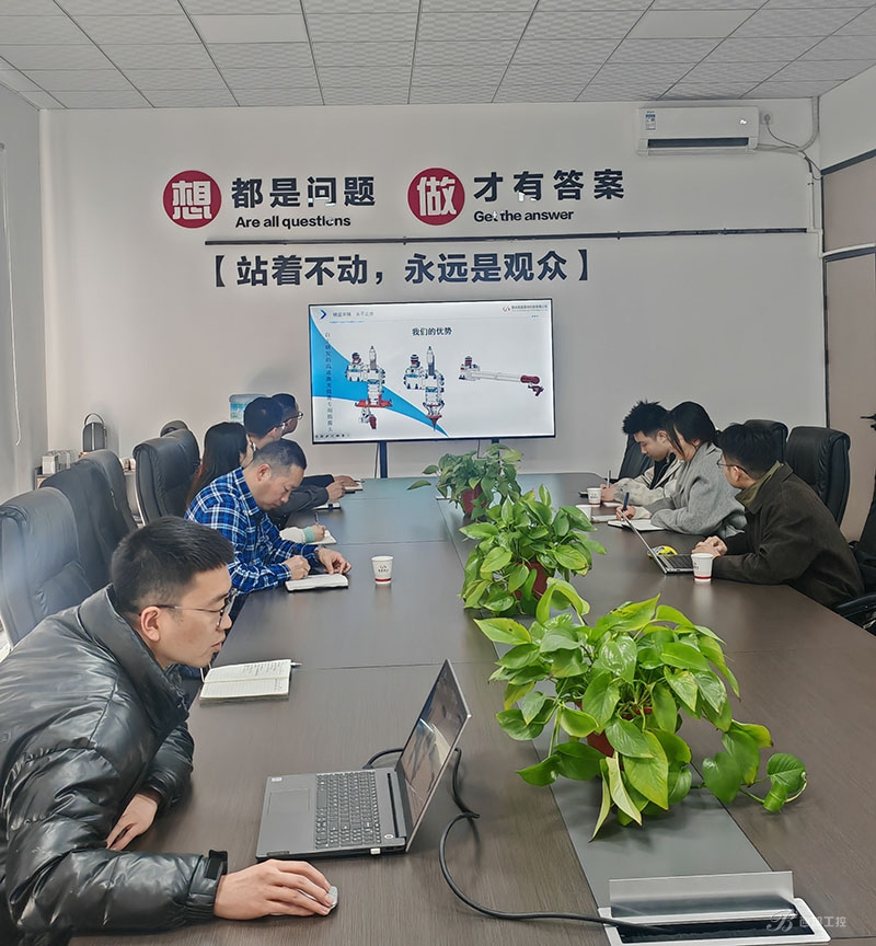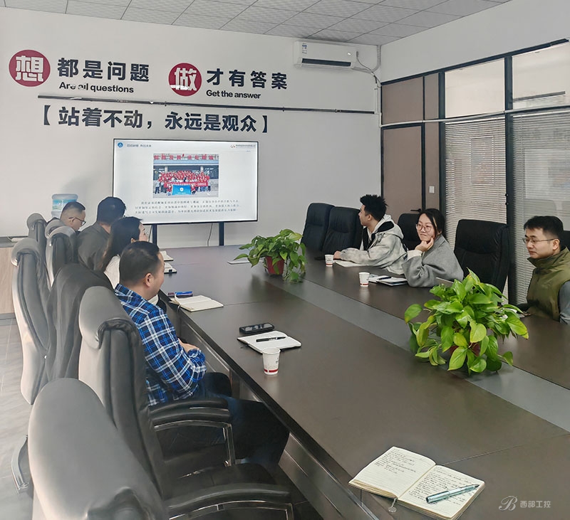 参观结束后,双方在公司的多功能会议室举行了座谈交流会。会上,西安国盛激光的贺副厂详细介绍了公司的发展历程和主要产品,以及公司产品这几年在石油、化工、钢厂、航天方面的应用案例,最后在激光技术领域的研发历程、核心技术、市场应用情况以及未来发展规划。