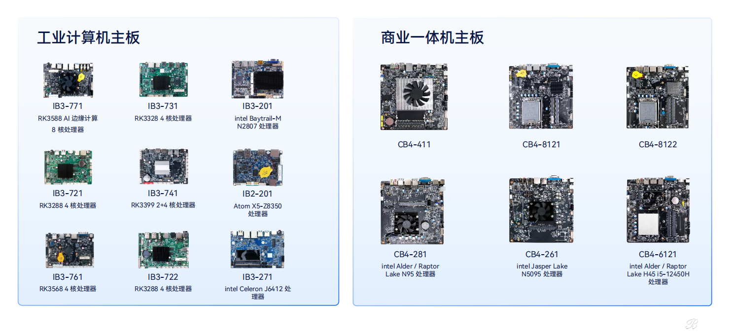 面向教育、安防、工业控制等智能化场景,杰和科技推出多平台、多尺寸的主板解决方案,涵盖Intel、瑞芯微 Rockchip、国产飞腾与兆芯平台,产品覆盖M-ATX、Mini ITX、Thin MiniITX、3.5寸、PICO等标准主板,具备丰富的扩展接口与高可靠性,支持多系统兼容及定制化服务。