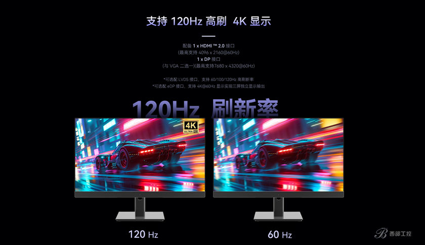 CB4-812-U2支持DirectX 12.1、OpenGL 4.5、OpenCL 3.0 图形标准,拥有强劲图形处理能力。配备多样化显示接口:VGA/DP(二选一)、HDMI 2.0、LVDS/eDP(二选一),最高可实现8K显示,LVDS支持100Hz、120Hz刷新率,畅享清晰细腻的画面表现与高效的工作流。