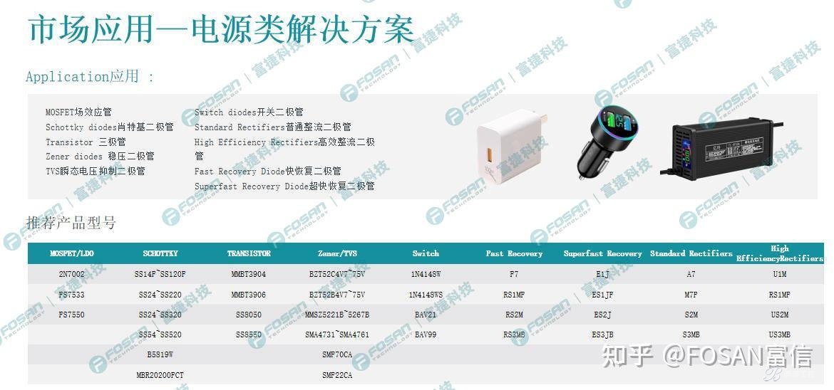 针对手机充电器、车载充电器、大功率工业电源等多元电源设备,富信半导体以 MOSFET 场效应管、肖特基二极管、三极管为核心,提供覆盖 “转换 - 稳压 - 保护” 全链路的元件解决方案。