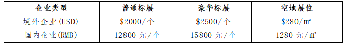 备注:1、双面开口标准展位角位费:国内企业RMB500元/个,外资企业加收10%;
